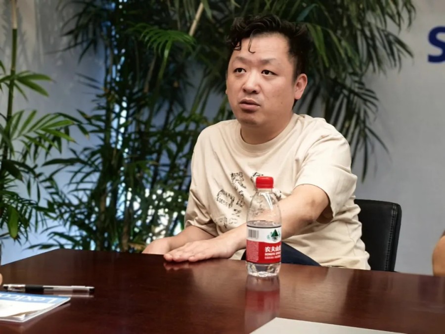 (圖為公司董事長馬勇與新員工暢談)
